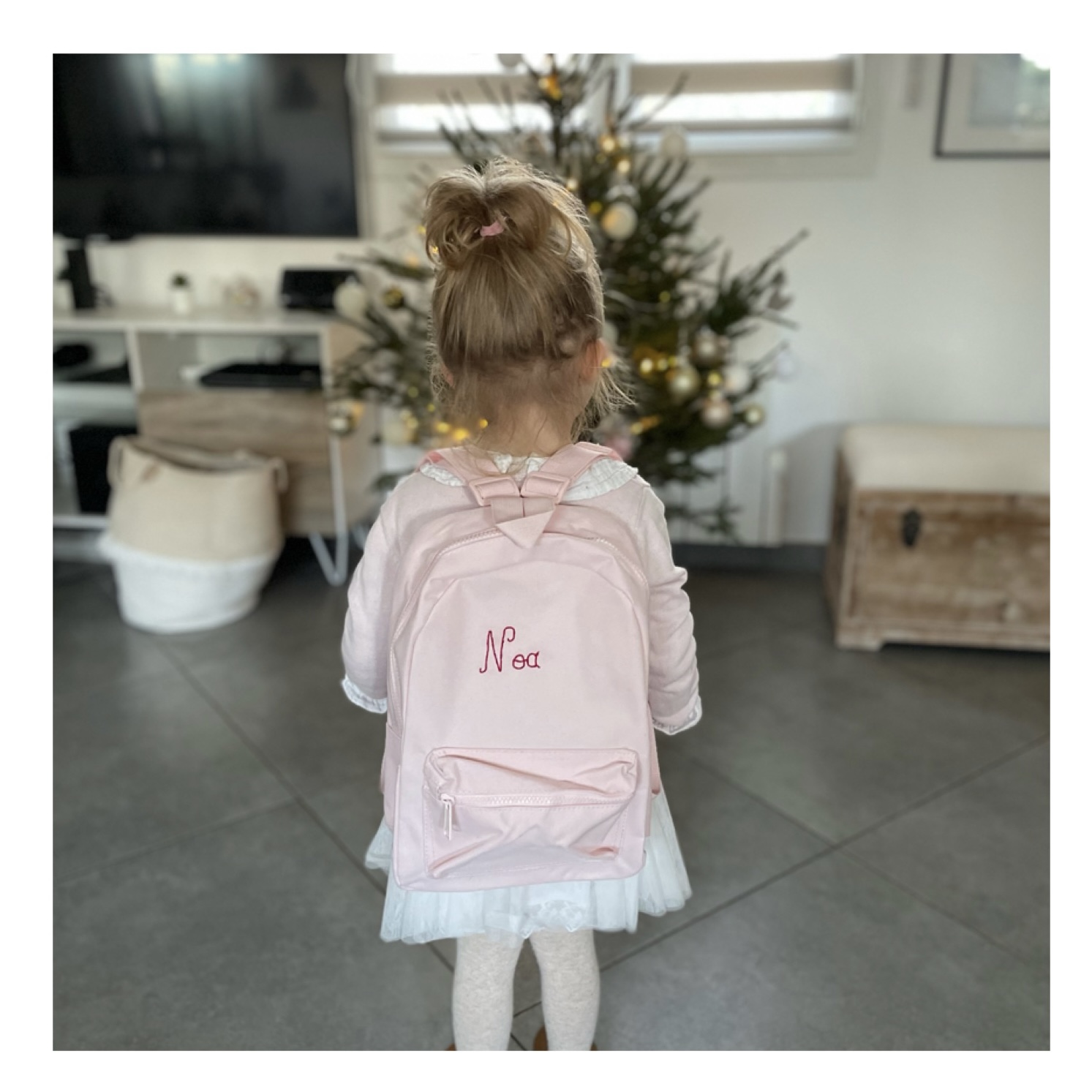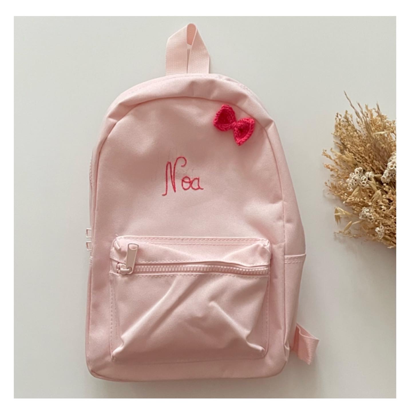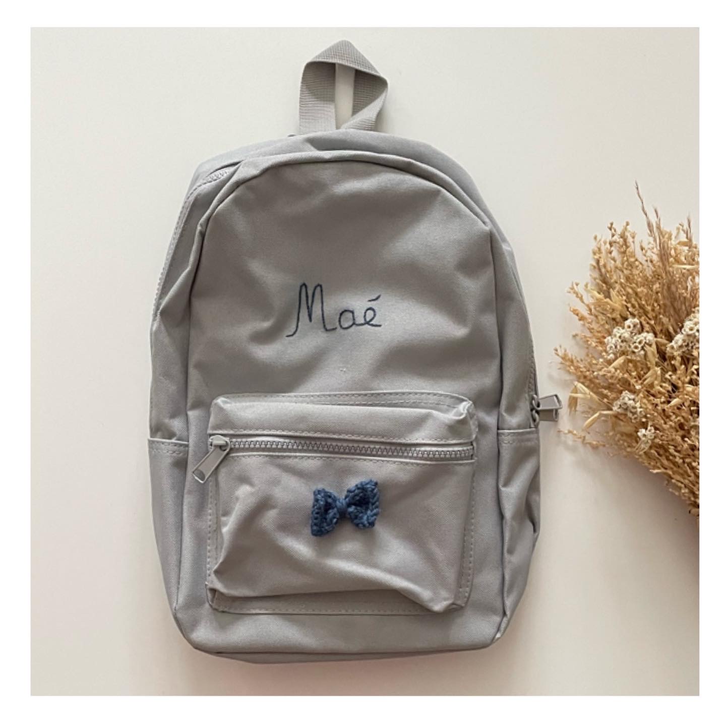 J’étais déjà tellement heureuse de pouvoir accompagner vos bébés dès leurs premiers jours de vie avec les doudous, me revoilà pour continuer de les guider dans leur émancipation avec papa et maman. Ce petit sac à dos a pour but de leur rappeler leurs doudous chéris, grâce à la broderie et au petit nœud assortis à ces derniers.